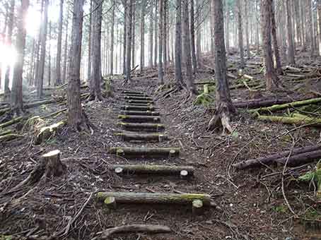 林道を横切るところは1450メートルくらいのところで、登山口から550メートルのぼったところだが、コースタイム通り1:40で到着した。