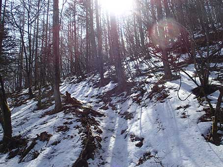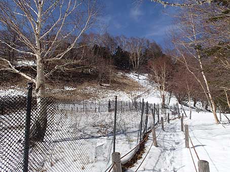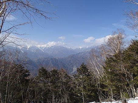 2019/3/2 櫛形山は麓から見るとほとんど雪が着いているようにはみえなかったが、頂上付近の木々の間には雪があるのが見えた。