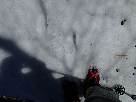 幅広い足跡で指が5本ついているものが連続していた。熊の物としか考えられない。しかの足跡もあった。万太郎山は形が良い。