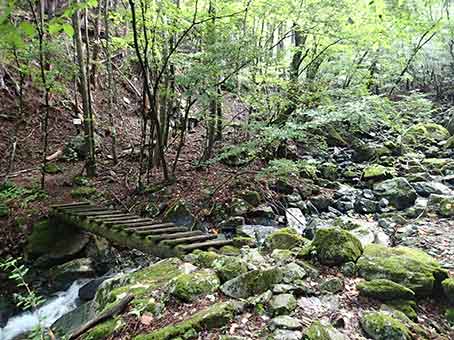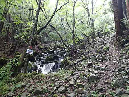 初めのうちは沢沿いの道で、出だしから1時間くらいは水が得られる。