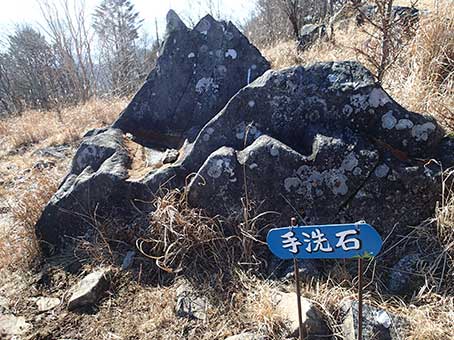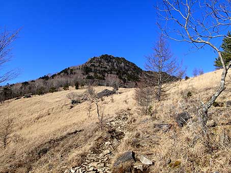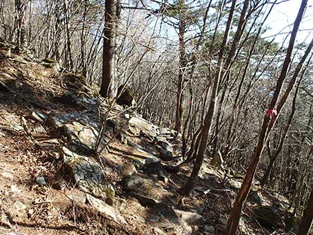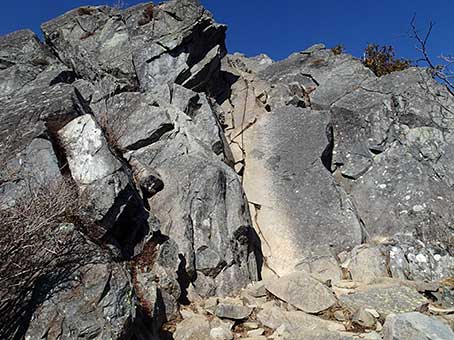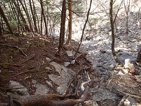 乾徳山の北側の道は岩がゴロゴロしていて下りにくかった。