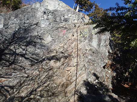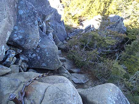 頂上近くには鎖の付いた岩場が2カ所ある。
