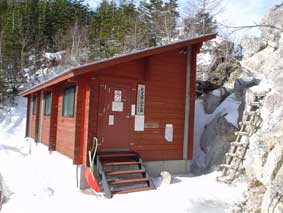 11:15 七丈小屋着。小屋には管理人がいて、ポカポカ。テント場の申し込みをした。缶ビール二本購入。水は無料で分けてもらえた。感謝。以前は七丈第二小屋が冬季開放されていたが、新築されてからは、無料開放はしていないようだ。テント場は小屋から5分ほど登ったところだ。トイレはテント場には無く七丈第二小屋横の屋外トイレを利用する。小屋に宿泊している人もトイレは第二小屋横の屋外トイレを使用するらしい。テント場到着が早ければ、頂上往復の可能性も考えていたが、疲れていたのでのんびり過ごすことにした。