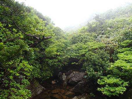 登山道のくだりはツルツルの粘土質の地面が出ているところが多く、滑りやすかった。 1350メートルから下はスキー場内を歩いた。 16:20分ころ車に戻った。9時間かかった。 時間はかかったが還暦過ぎても沢登りをしていられることが嬉しかった。 |