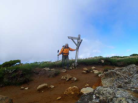 箕輪山頂。14:40。予定より大分時間がかかった。 |