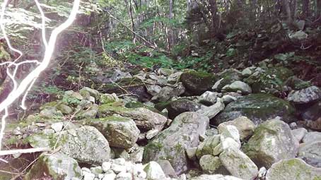 井戸沢出合 伏流状態で、この事を知らないと通り過ぎてしまいそうだ。 |