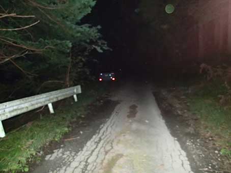 途中でヘッドライトをつけ、 18:20すっかり暗くなって車に戻った。 |