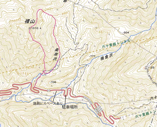 地図を見ると国道252号線から沢の方へ向かう破線の道が書かれていて、以前は少し車が入れたようだが