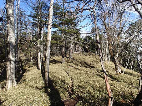 | 小金沢山山頂 | 稜線上の登山道 帰途につく |