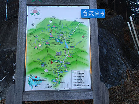 | 白沢橋のたもとは林道入り口になっていて ゲートが閉まっているが、案内板がある |