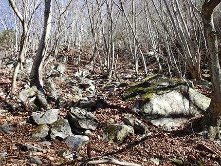 | 山の斜面をジグザグに登って行く。 | もうすぐ峠だ |