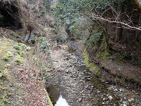 | 地図で沢を渡る所は道の下に沢のトンネルがある | 沢の方は穏やかに流れている |