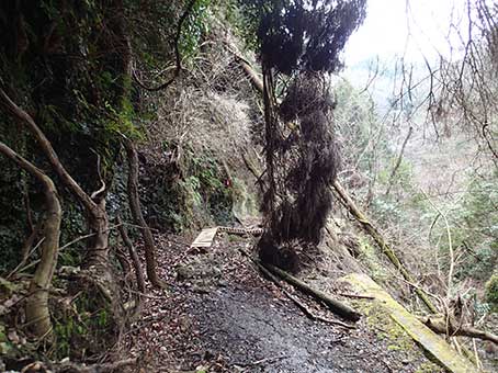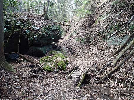 | 大滝の近くにもトンネルがある | 板が渡してある |