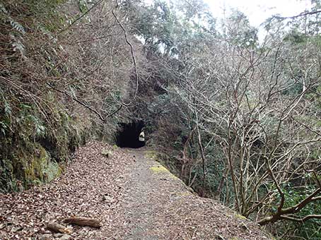 トンネル横の階段が石射太郎への登山口だが、 トンネルが林道の入り口だ。8:45出発 |
