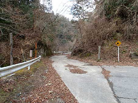 | 崩落地だがトレースがしっかりある | 林道の三叉路 |