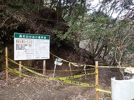 大滝から高宕山へのルートの入り口 立ち入り禁止のテープが厳重 |