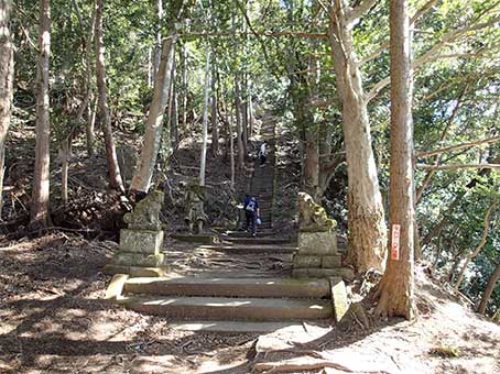 | 観音堂へ向かう階段を振り返る | 石灯籠 ここから天空の岩への道がある |