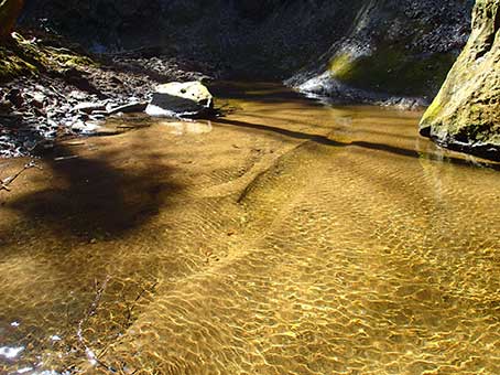 | 川床の岩盤は、平らなところやヒダ状のところもあった。 | |