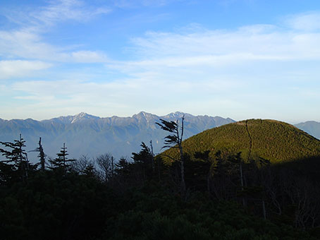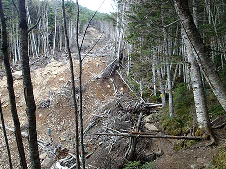 | 少し登ると編笠山の向こうに、仙丈、甲斐駒、北岳が見えた。 | 以前よりも崩落が進んでいるのではないだろうか。 |