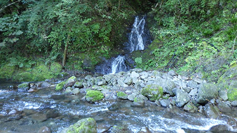 いったん伏流となるが、また水流が現れて、滝も出てくる。 |