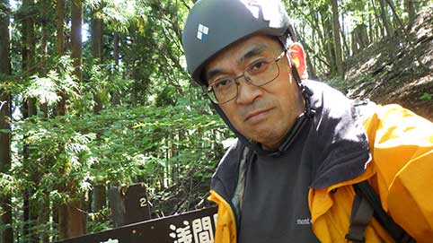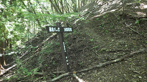 2時間余りで登山道に出た。11:00 主稜線のある右側に少し行ってみると看板があった。 |