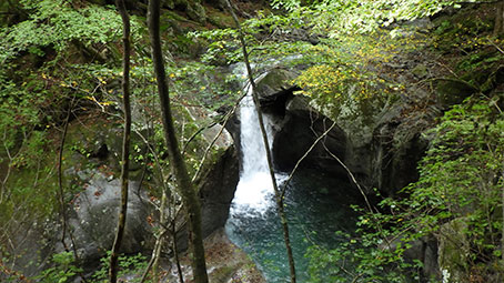 こんな滝や、深い釜が見える所がある。 |