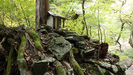10:40 ようやく”山の神”に到着した。 東沢に入ってから2時間もかかってしまった。 以前は70分で到着している。倍近くかかった。 この”山の神”までが、ひとつの核心部だと思う。 |