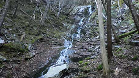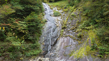 この写真は東のナメ滝を遠くからみたところだ。 近くからの写真では下の方しか写らない。 |