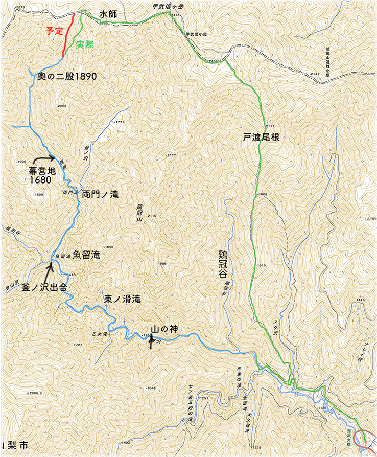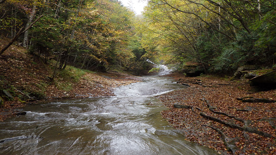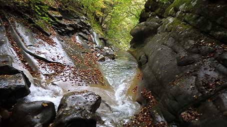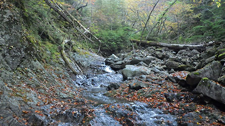 釜の沢はかつては甲武信岳への一般ルートとして登られていた沢で、魚留滝や千畳のナメ、両門ノ滝など渓谷美に優れている。