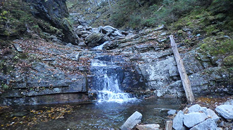 | 途中からナメ滝が出てきた。右の写真の連瀑を越えると、1890mの奥の二股になる。 | |
