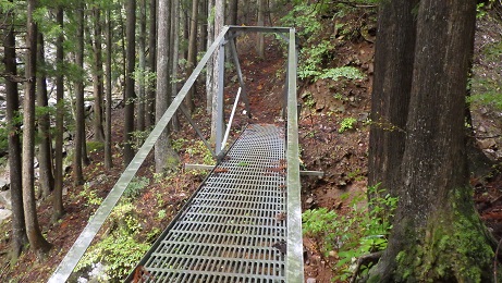 | はじめのうちは沢沿いのルートで | 変わった形の橋なども面白い |