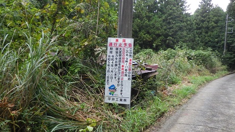 林道の入口には令和4年10月20日から令和5年3月12日まで工事のため 朝9時から夕方17時まで車両通行止めになるとかかれている。 |