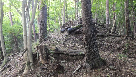林業が行われている斜面を登って行き、尾根にでたところは 広々としたところだった。 |