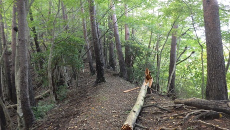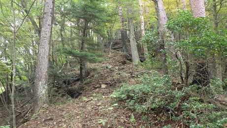 | 尾根をジグザクに登って行ったり、幅の狭い尾根を辿ったり、小山をトラバースしたりする。 | |