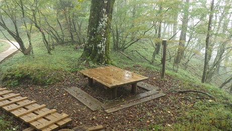 稜線の登山道は東海自然歩道にも指定されているところで 木道や木の階段が多かった。 |
