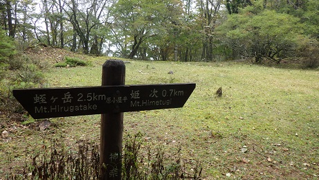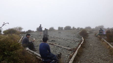 | 姫次(ひめつぎ)1420mに10:05到着。 ここには、以前伊勢沢を登った時に来たことがある。 晴れていれば富士山も見えるところだが、曇っていて何も見えなかった。 |