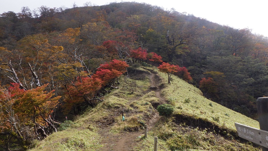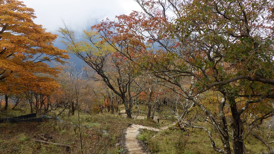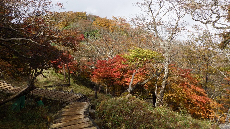 | 下りでは、登山道の周囲の紅葉が綺麗だった。 | |