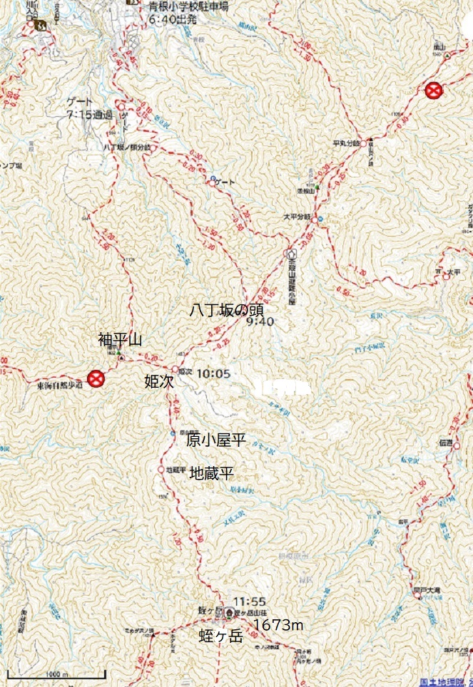 登山口の標高は510メートル、蛭ヶ岳山頂が1673mで標高差は1163メートルだが、
