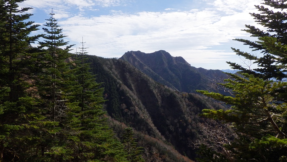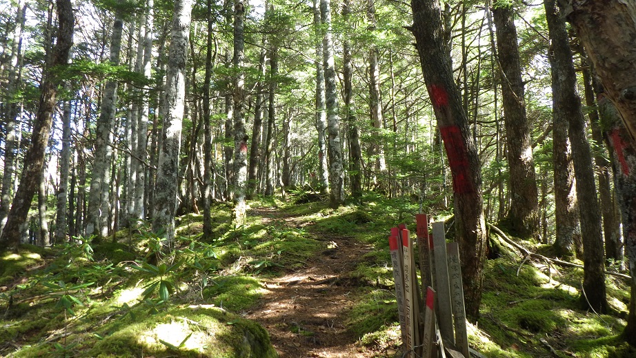 御小屋尾根を降りた。降り始めて1時間ほどで、もう登ってくる人がいた。 5時前に出発しているのではないだろうか。 その後もどんどん登ってくる人がいて、全部で10人以上いただろう。 |