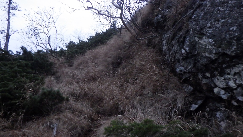 | 第二岩壁の左を巻くところ。無雪期には特に身の危険を感じるところはなかった。 | |