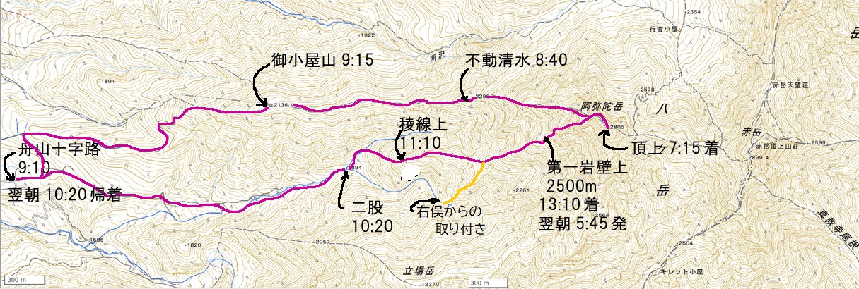 阿弥陀岳中央稜は一般ルートではないのでほとんど人に会うことが無く、マイペースでのんびり登るのに向いている。