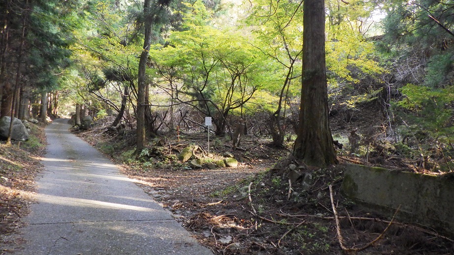 | 登山道は林道を横切って、上へ続いている。 | |
