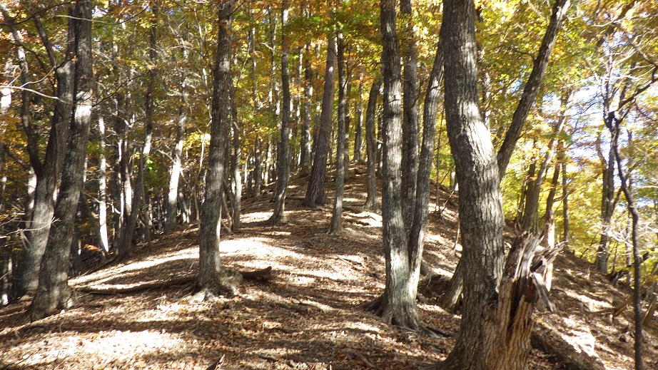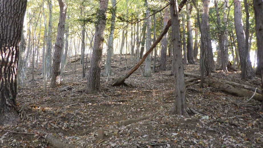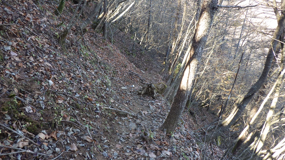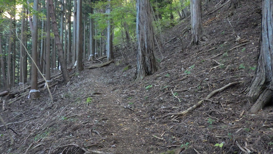地形図には登山道は書かれていないが、道はしっかりある。 以前に来た時は、こんなにしっかり道があるとは知らなかったので、 道のないところを強引に登ってしまった。 |