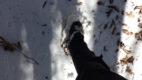 始めは枯れ葉の上を歩いていくが、その内、雪がでてきた。 |