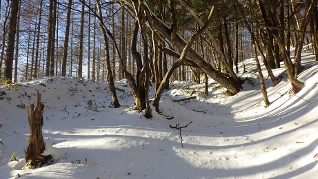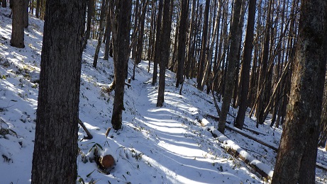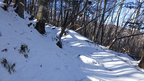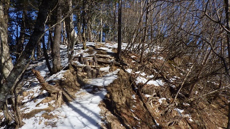 石尊神社からの登山道も日帰りで登る人が多いが、私は雪のある時に途中で一泊して登りたいと思っていた。