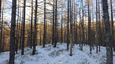 数日前にこの山に登った人の記録では、まだ雪はなかったが、 その後に降ったようだ。 |