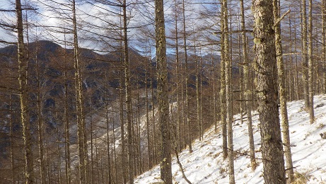 ヴィレッジ白州の登山口は1150mであり、登り時間を短縮できるが、登山口へ通じる林道が冬季は通行止めになる。