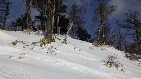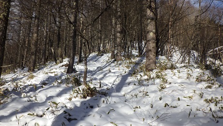 | 登山道の形が分かるところが多かったが、所々不明になり、適当に進んでいった。 | |