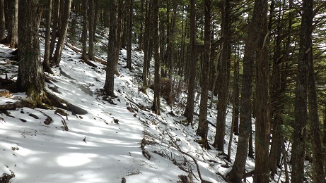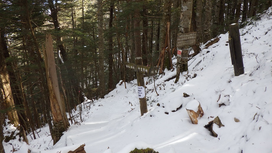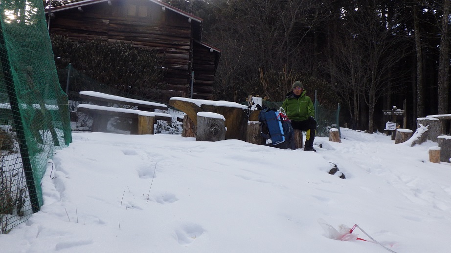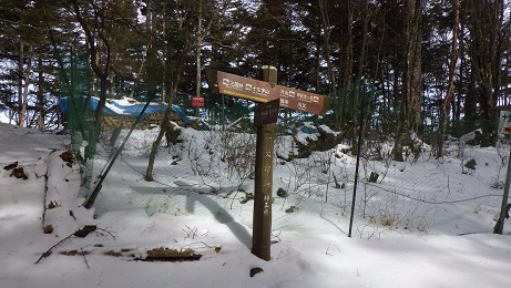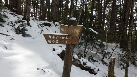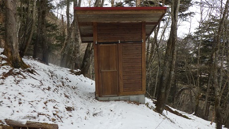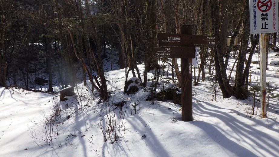 栃本方面への分岐部は小屋の少し上にあった。 トレースはずっとなかったが、わかんが必要なほどの 積雪ではなかった。 |