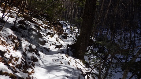 しばらくすると沢から離れて つづら折りの道を登って行くようになる。 |